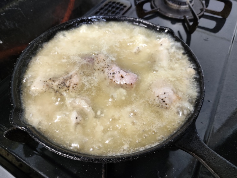 油に片栗粉を溶いておく方法にて、薄衣に仕上げる。