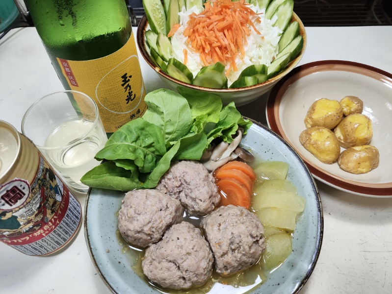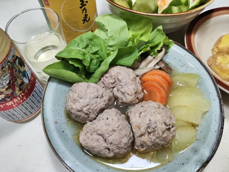 木曜日の夕飯は豚ひき肉団子と冬瓜、野菜の中華スープ煮。