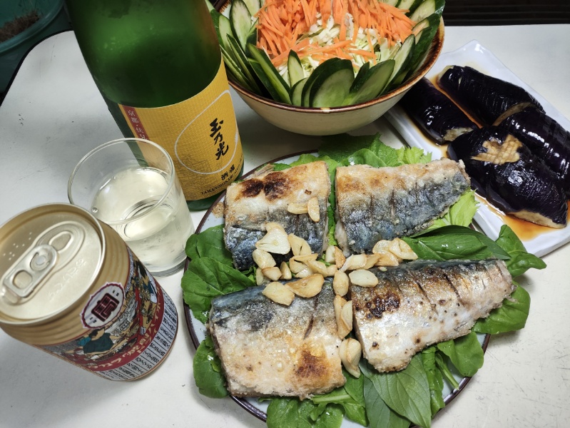 夕飯は鯖のムニエル。