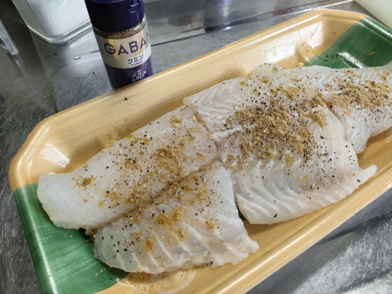 いつもならコリアンダーを使うのだが、間違えてクミンを振るってしまい、パンガシウスがカレー香になってしまった。