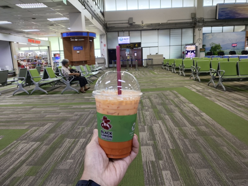17回目のタイ旅行8日目 投稿日時: 2025年9月25日 投稿者: blog3rd 帰国日。チェンライ空港ではアイスタイティーで。いつもバタフライピーティー飲んでいたけど、飽きた。しかし、この大量に冷たいの飲むの身体が冷える…。85バーツ。日本円で400円、なかなかの値段だ