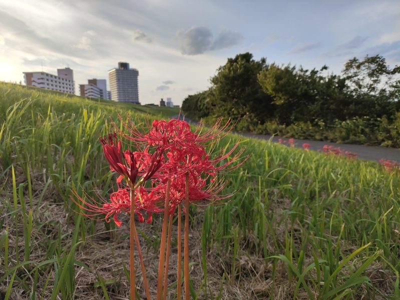 彼岸花を求めて、赤羽北の荒川河川敷にて。
