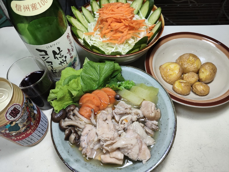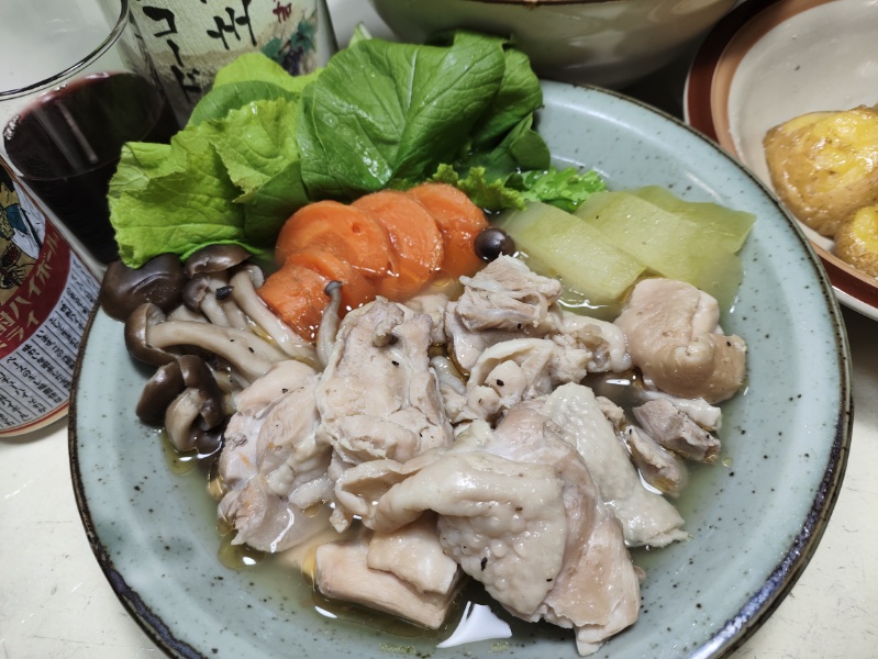 夕飯は鶏もも肉と冬瓜、野菜の中華スープ煮。