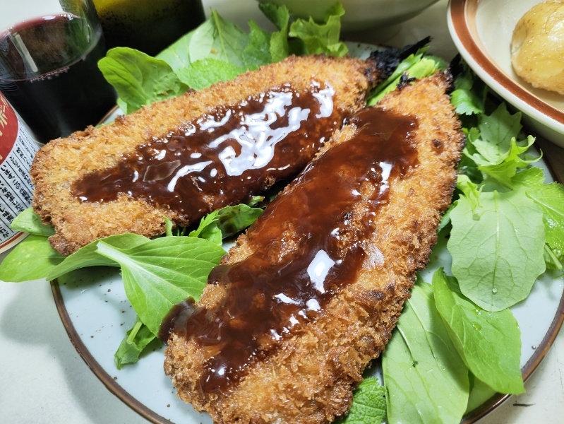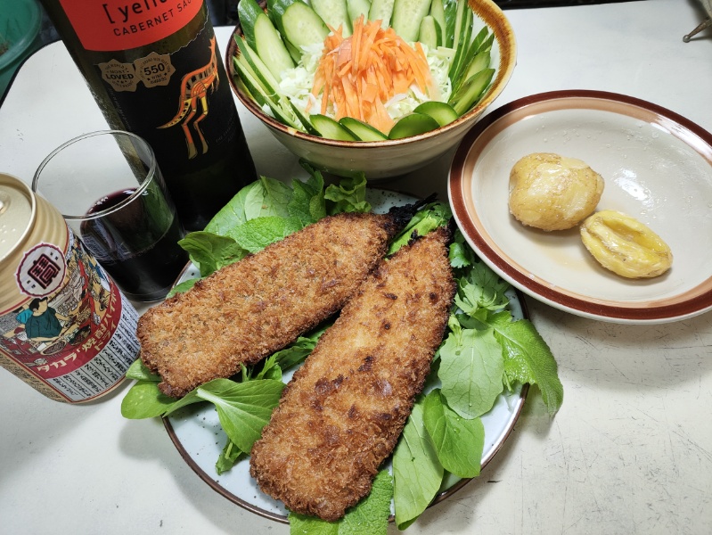 夕飯は、買ってきた秋刀魚のフライ。