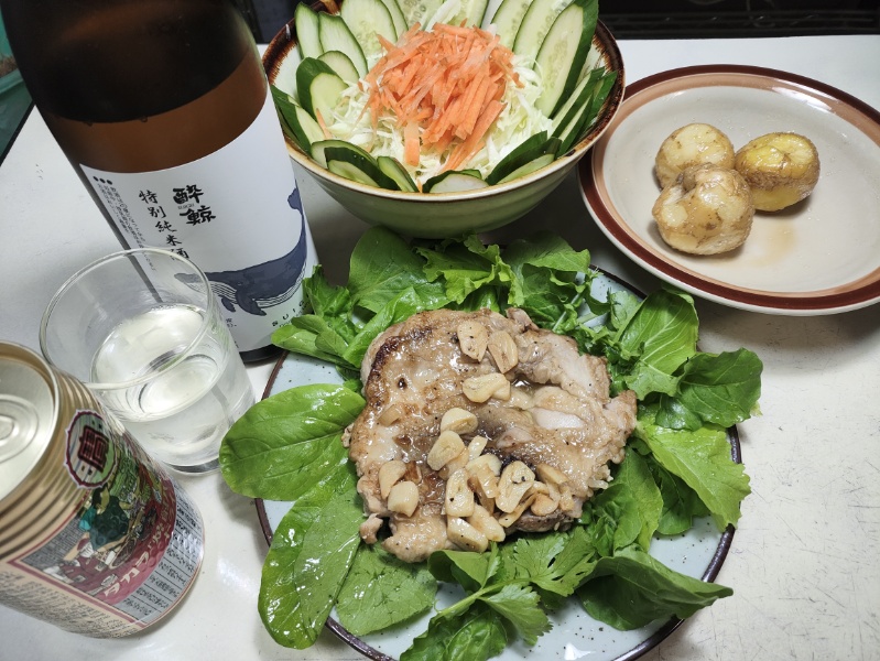 飲み物は日本酒、酔鯨酒造、酔鯨特別純米酒。