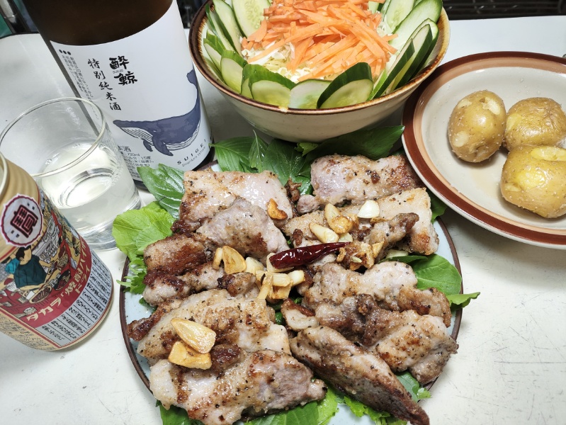肉、塩コショウ、ニンニクの組み合わせが一番美味しいかも。