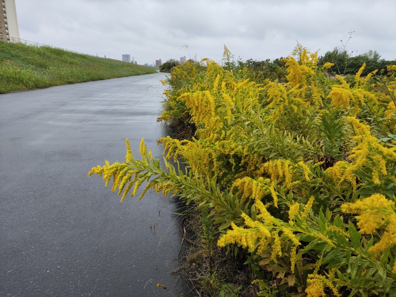 雨の天候ながら、セイタカアワダチソウとススキを撮らなくては、と思って向かった荒川河川敷。