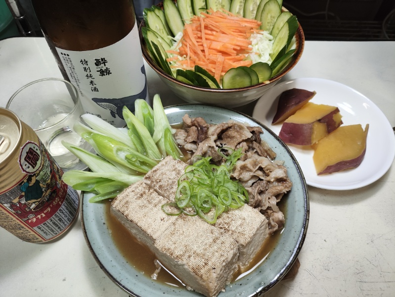 夕飯は作り置きの肉豆腐にて。