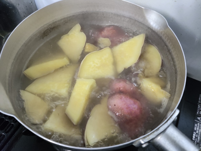 付け合せはさつまいもを砂糖と醤油味で炊いて。