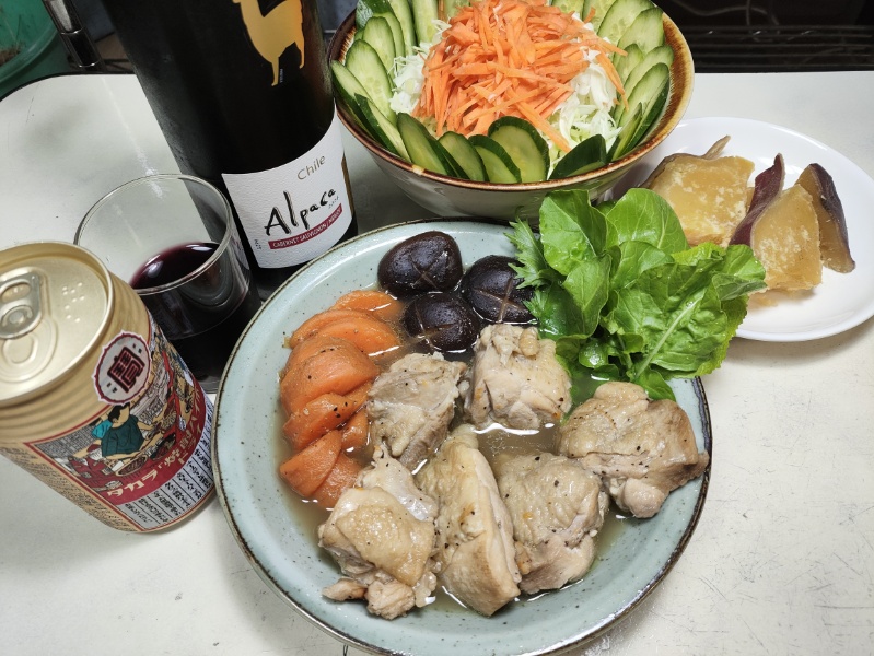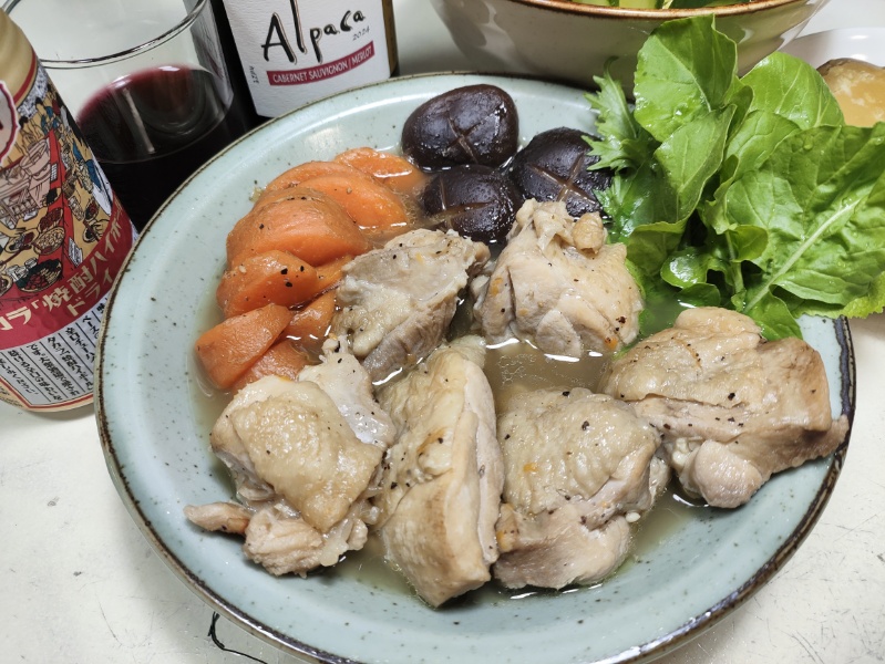 夕飯は鶏もも肉と野菜の中華スープ煮。