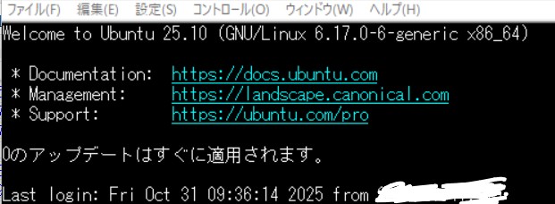 本日、半年に一度のアップデート、Xubuntu 25.10が降りてきたので自宅サーバーをssh越しにアップデート。
