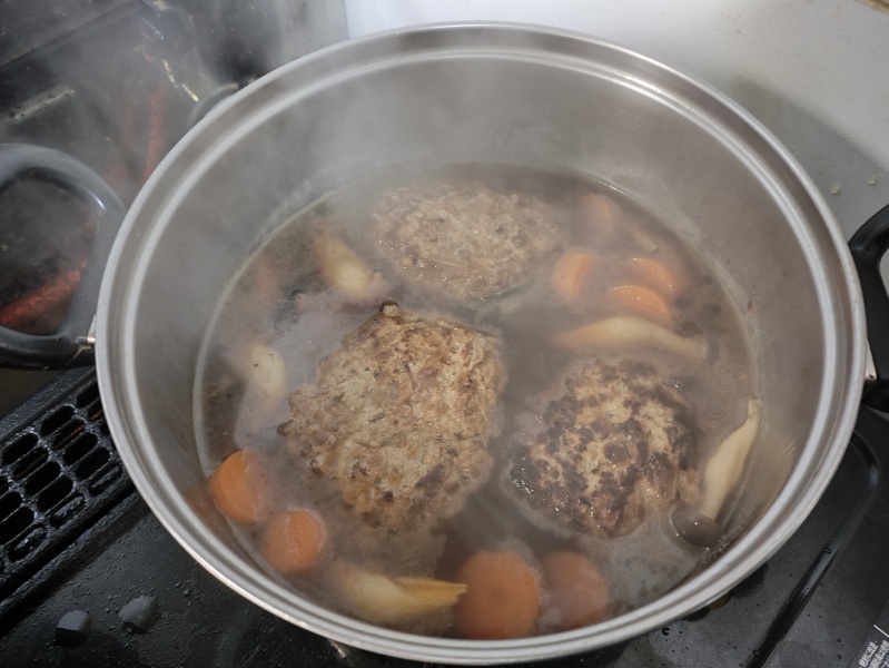 豚ひき肉と炒め玉ねぎを塩コショウコリアンダーで味付けして、こねて成形して。